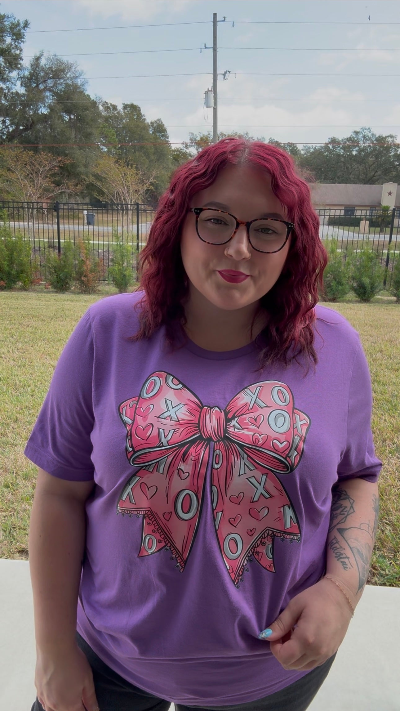 Get ready to wear your heart on your sleeve—literally! This purple Bella canvas graphic tee sports an adorable pink bow with scalloped edges and a sprinkle of x's, o's, and hearts (it's love at first sight, folks!). Perfect for those days when you want to be comfy and cute—because who says you can’t have your cake and wear it too?